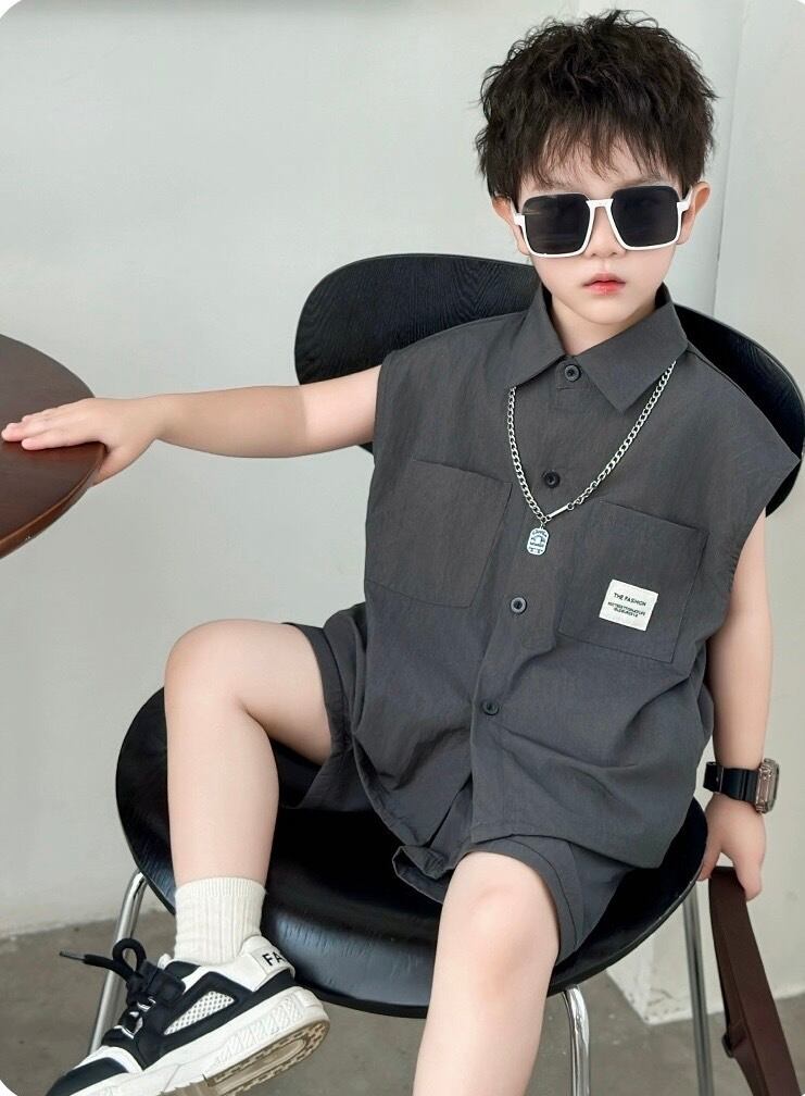 涼しげなノースリーブシャツは軽やかな素材で、夏の暑い日でも快適に過ごせます。ハーフパンツは動きやすく、お子さまの活発な動きにもぴったりです。シンプルでスタイリッシュなグレーのデザインは、どんなシーンでもおしゃれに決まります。普段使いからお出かけまで、幅広く活躍するセットアップです。