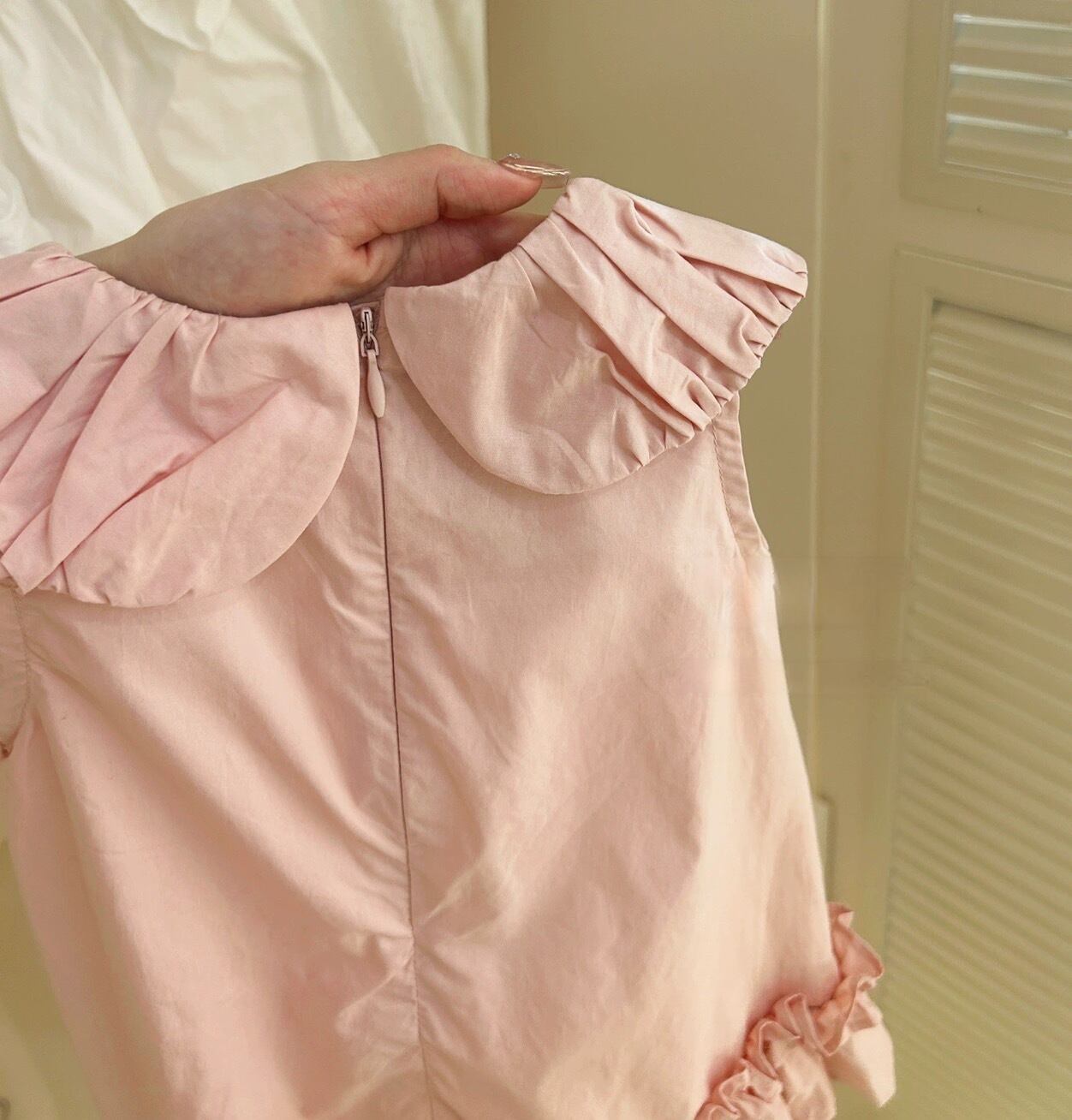 「ガーリーフリル襟ワンピース」は、キッズ向けにデザインされた可愛らしいワンピースです。フリルが施された襟が特徴で、お子様の華やかさを引き立てます。柔らかな素材で作られており、快適な着心地を提供します。日常の遊びや特別なイベントにもぴったりです。トレンドのデザインで、お子様のファッションセンスを楽しませる一枚です。