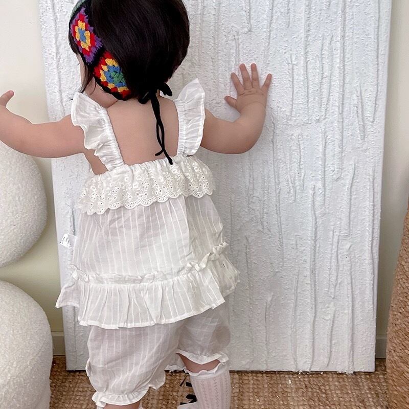 【66~100】全2色レースフリルベビーセットアップ