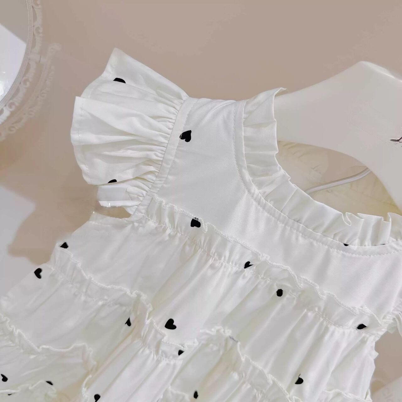 【90~140】ハートドットホワイトフリルワンピース