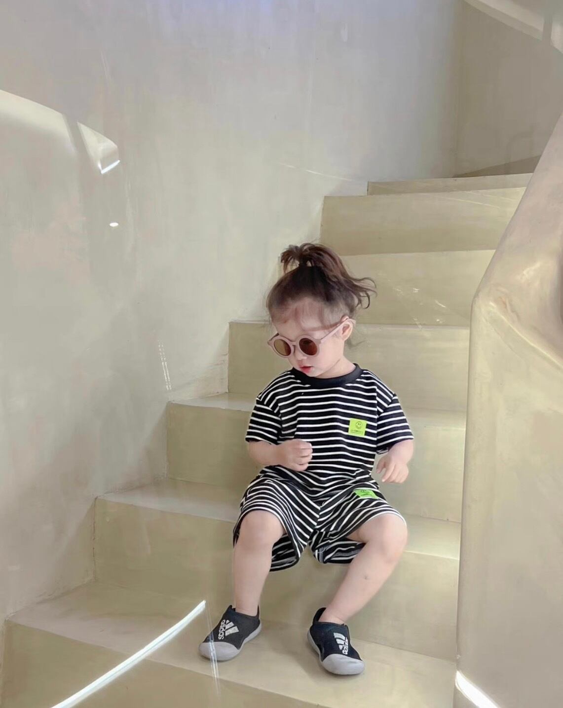 ストライプデザインのワッペンがアクセントの半袖トップスとハーフパンツのセットです。軽やかな素材で作られており、動きやすさと快適さを兼ね備えています。トップスにはかわいらしいワッペンが施されており、おしゃれでカジュアルな印象を与えます。ハーフパンツはウエストがゴム仕様で、着脱も簡単。普段のお出かけや遊び場での使用にぴったりのセットアップです。デザインと機能性を両立させた、おしゃれなベビーウェアです。