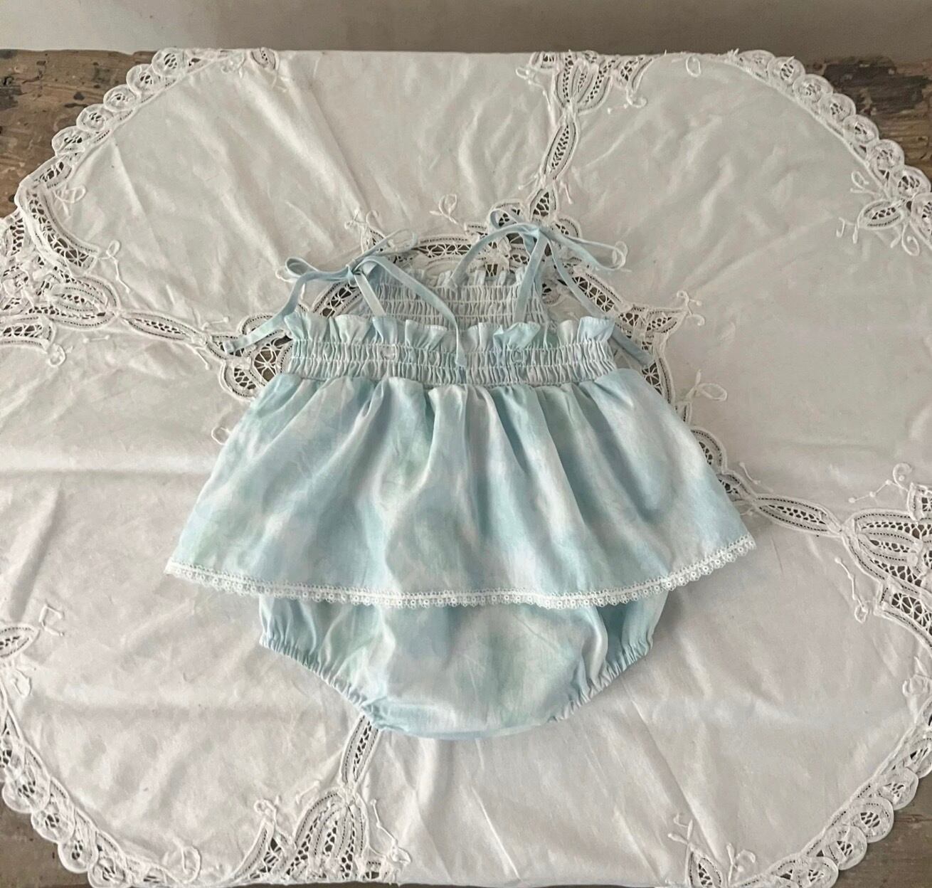爽やかなアクアブルーが美しいキャミソールロンパースです。柔らかなシフォン素材を使用し、ベビーのデリケートな肌にも優しく快適にフィットします。胸元には可愛らしいシャーリングが施され、ふんわりとしたシルエットが魅力的です。シンプルながらも上品なデザインで、特別な日のお出かけやお祝いの席にもぴったりです。おしゃれで実用的なベビーウェアです。
