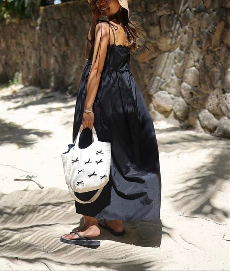 「リボントートバッグ」は、シンプルながらもエレガントなデザインが特徴のトートバッグです。リボンがアクセントとなり、日常使いから特別なシーンまで幅広く活躍します。広々とした内部は、日用品や小物を整理しやすく、使い勝手抜群です。