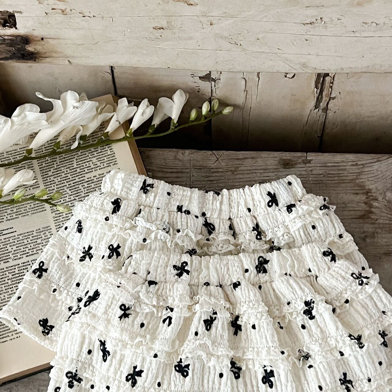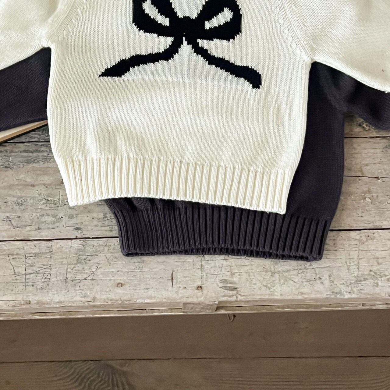 ふんわりとしたリボンデザインのセーターと、レースが施されたチュニックがセットになったガーリーなコーディネート。柔らかい素材で着心地も抜群。デイリーから特別な日まで幅広く活躍します。シンプルながらも可愛らしいデザインが、お子様にぴったりの一着です。