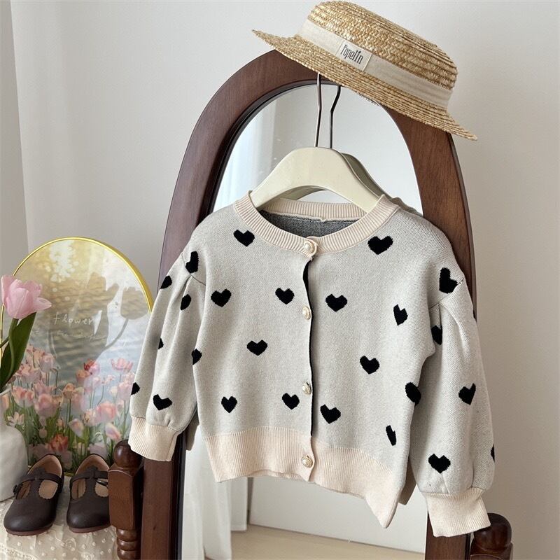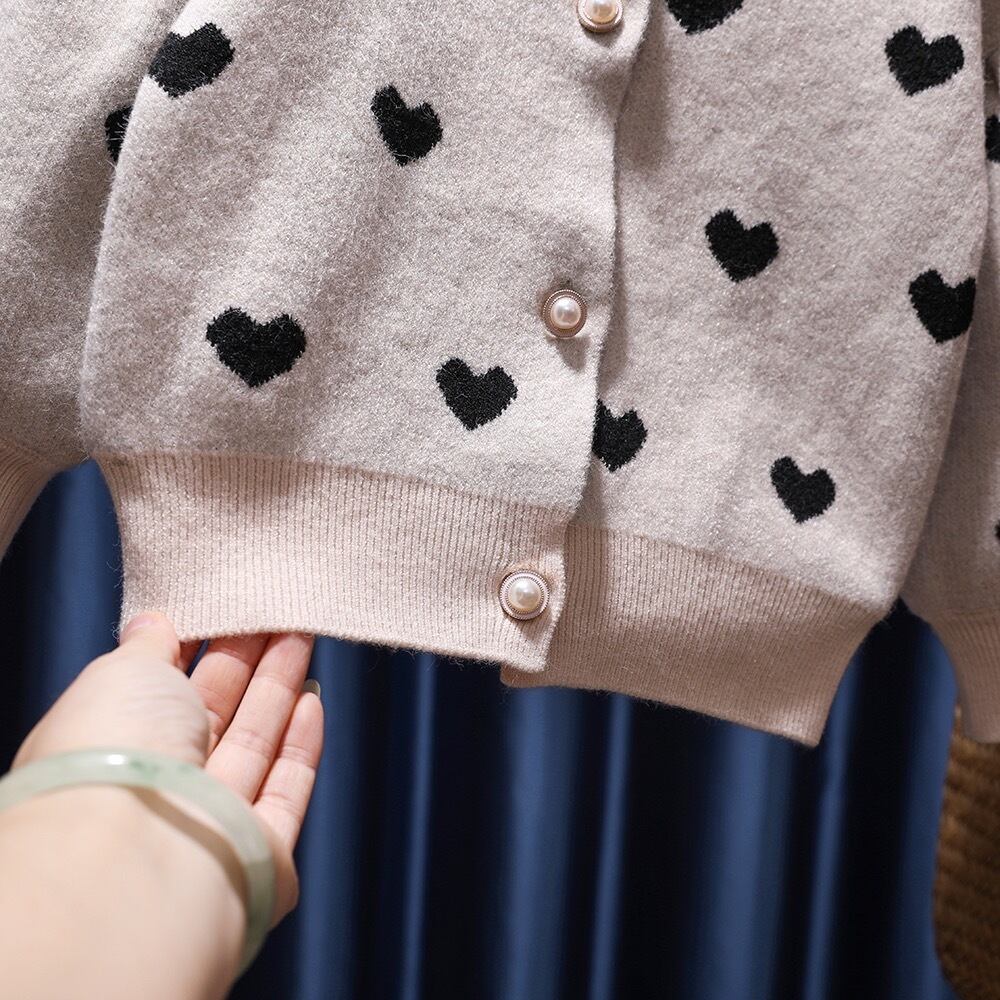 かわいいハートデザインと上品なパールボタンが魅力のカーディガン。ふんわり柔らかな素材で肌触りが良く、重ね着にぴったり。カジュアルにもフォーマルにも使える万能アイテムで、毎日のコーデに華やかさをプラスします。