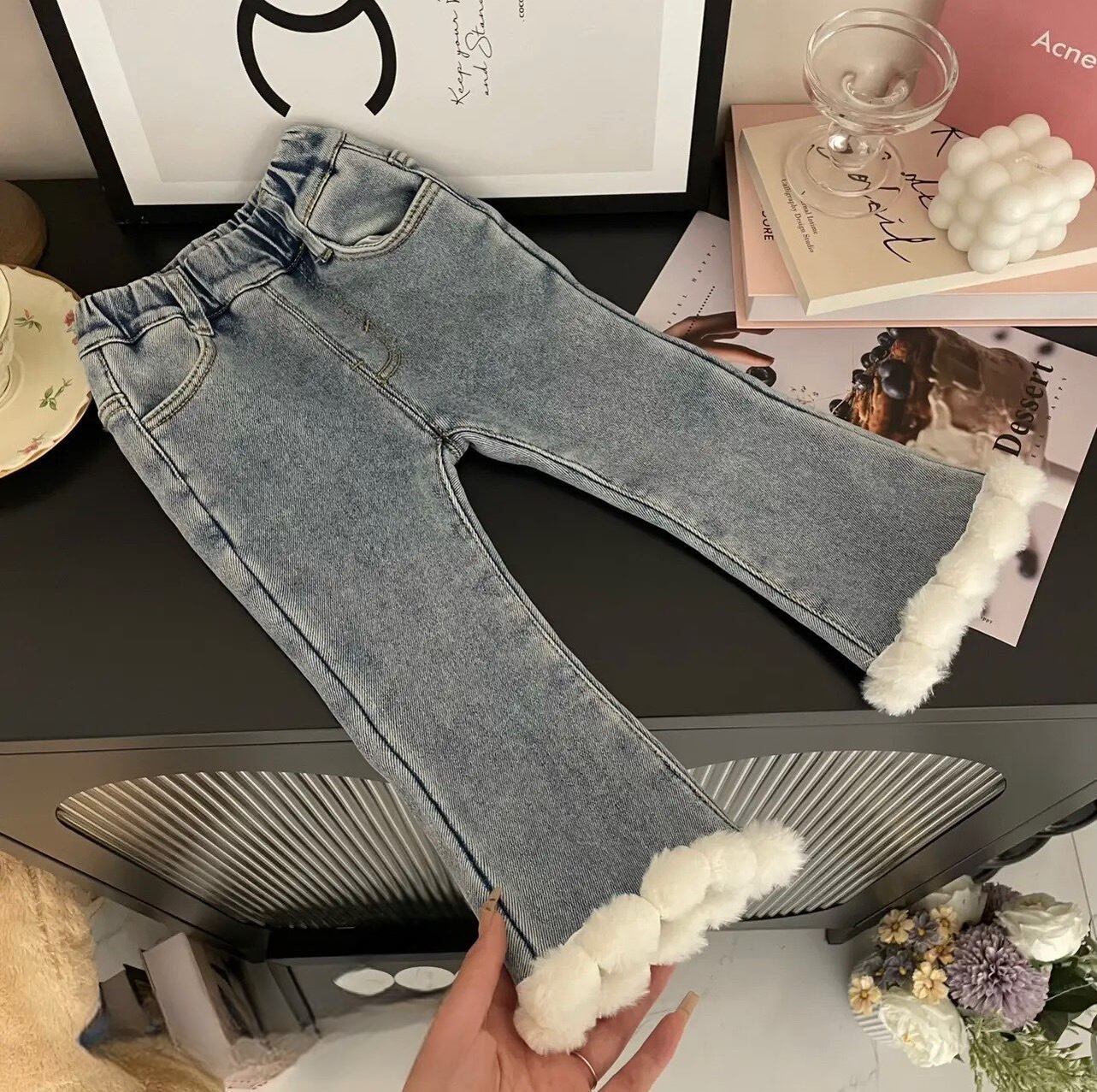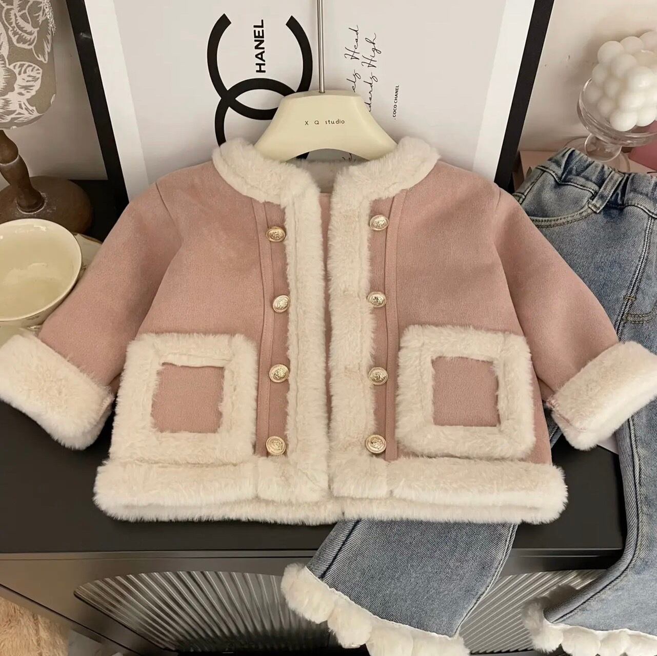 【80~140】ピンクムートンファージャケット&デニムセット